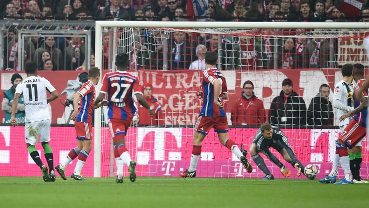Manuel Neuer made a horrendous error as Bayern Munich were stunned by a 2-0 defeat at home Borussia Monchengladbach in the Bundesliga on Sunday